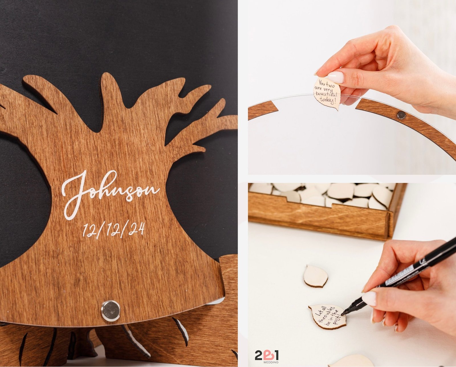 - Versatile Guest Signatures – Guests can sign directly on the wood leaves or write personal notes on add-on pieces.